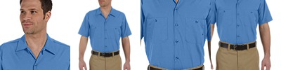 65% polyester, 35% cotton; Visa® moisture-wicking and stain-release finish; Generous fit across shoulders; Long-sleeves, extra-long tail and 20-line melamine buttons; Two chest pockets and two-button cuffs for a custom fit; Dickies logo patch at bottom of placket; Shirt colors match Dickies traditional work pants;