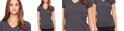 100% 30's preshrunk combed ringspun cotton; Tag-free neck label; Taped shoulder-to-shoulder; double needle stitching; Hemmed sleeves and bottom; Contemporary fit; stylish mitered V-neck; Narrower ribbed collar with coverseaming; Ash 99/1 cotton/poly; Light Steel is 90/10 cotton/poly;